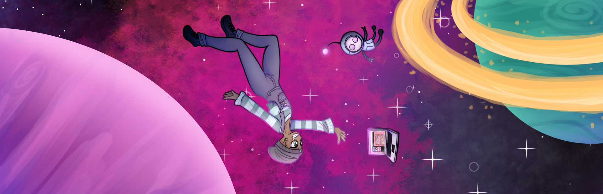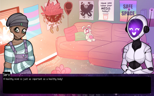 An asexual dating sim / visual novel!?Your name is Adrian Clarke and you've been given the opportunity to live the rest of your life on a distant planet under the watchful eyes of benevolent robots. Help shape society on T-3R4, build relationships with the other settlers, and keep Earth updated through your blog!?
