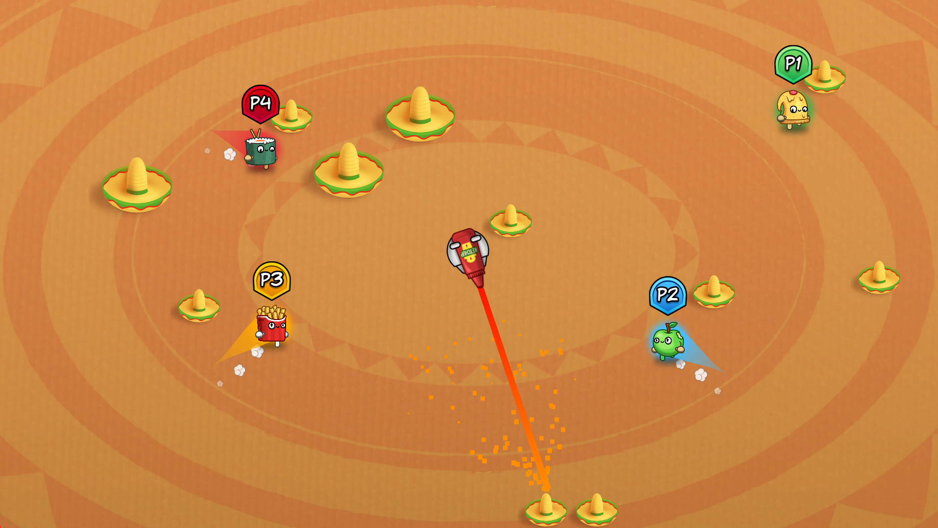 Experience the food mess! Call your friends to explode, shoot, swing, push, dodge, destroy and, eventually, ruin your friendship.