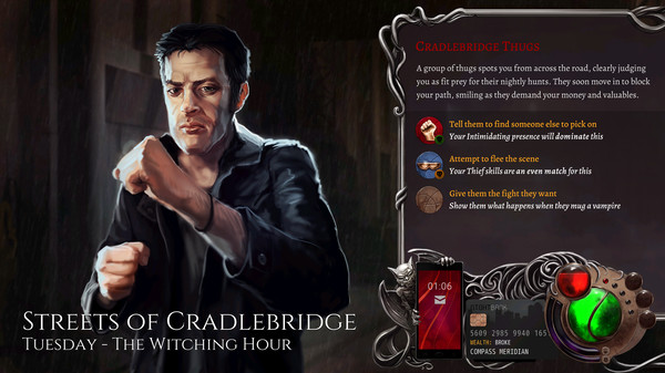 Enter a twisted, darkly comic city where humans and vampires are struggling to live together. Take over a failing nightclub on the wrong side of the tracks, and turn it into your personal empire through seduction, intimidation, and careful use of secret supernatural Gifts. Befriend and recruit fellow outcasts, digging deep into their stories and harnessing their skills. Explore a fully voiced, lavishly written world of dark shadows and bright neon, where your every decision will push the world towards a bold united future, or forever destroy any hope for peaceful coexistence.