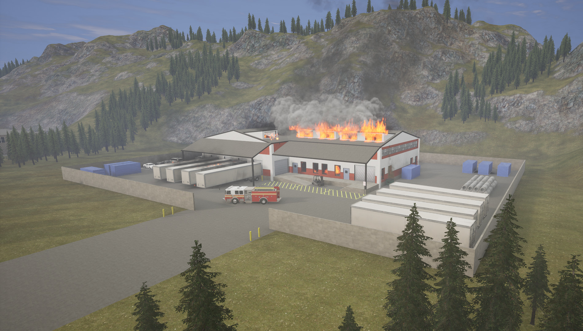 Emergencies take place in a variety of environments including suburbs, commercial businesses, and rural farm land. Emergencies include structure fires, hazardous gas leaks, propane tanks fire, and more! More emergencies are being added over time.