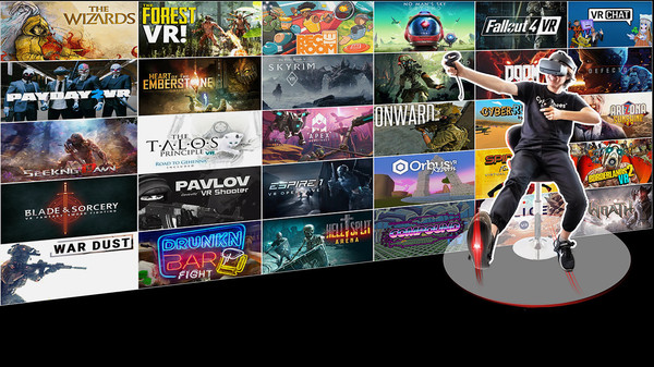 The Cybershoes are strapped directly onto your feet, and as you are seated in a swivel bar stool, you?re ready to begin your VR adventure. The Cybershoes are compatible with many VR games (e.g. Boneworks, No Man's Sky, Skyrim, DOOM, Arizona Sunshine, Fallout, Onward, Pavlov, RecRoom, VRChat), and function with SteamVR, the HTC Vive, Oculus Rift, the Quest via Oculus Link, Virtual Desktop and Oculus store games, Windows Mixed Reality, and Pimax. With the Cybershoes at your feet, all of your moments are controlled by your own physical movement, so you can walk your VR adventure as if you were actually there.