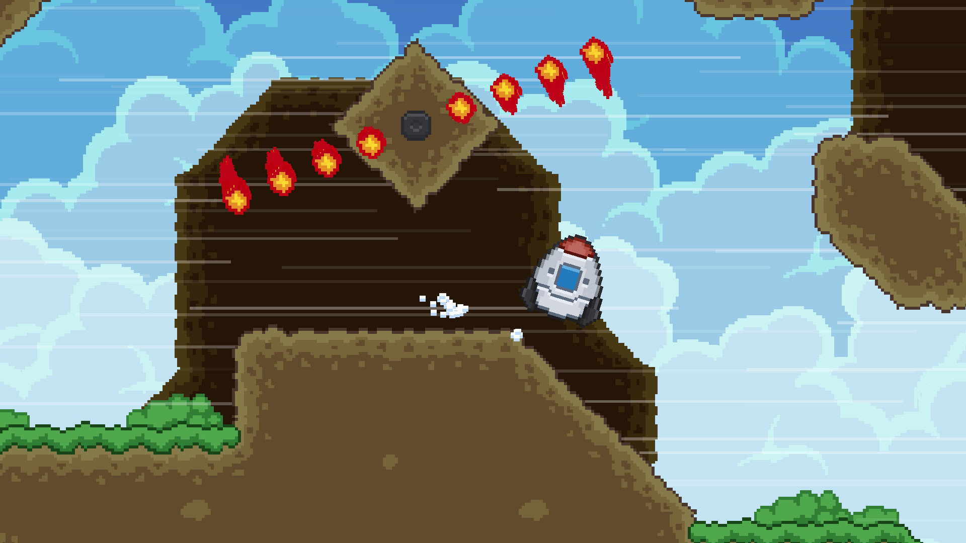 Super Rocket Ride is a collaboration between Cosmocat and Unruly Games. It can best be described as a cross between old school lander games and classic platformers of the SNES era: a simple control scheme, lush pixel art, and unforgiving levels fraught with obstacles and hazards.
