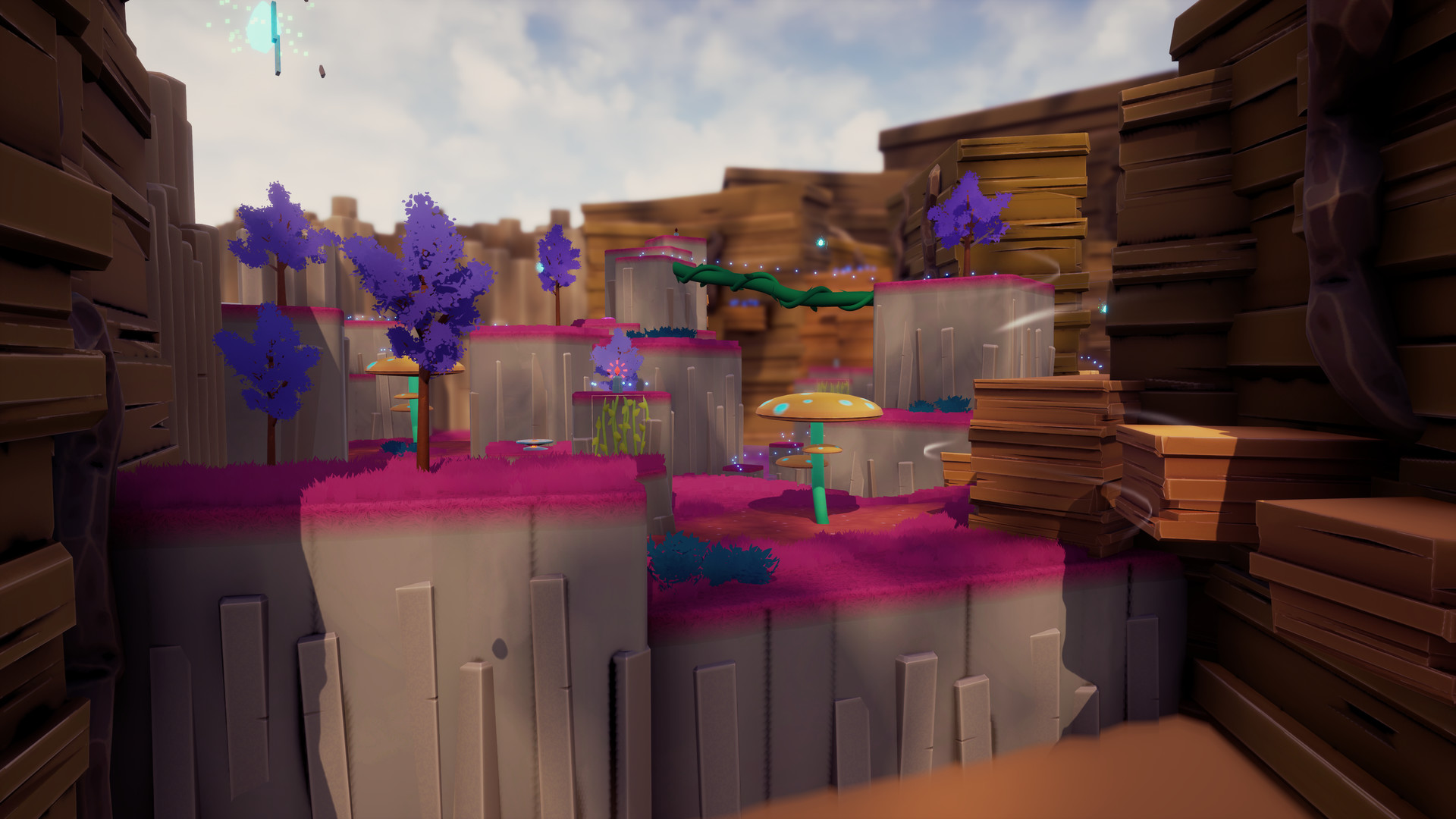 Across this vibrant world, you will journey through lush forests full of wildlife, treacherous canyons laced with giant fungi, impossible floating islands in the clouds, and a wild, untamed jungle.