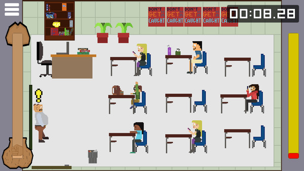 While you are choking the chicken, students will toggle between performing actions where they can spot you and actions where you are free to handle your business. The Selfie Queen will take selfies and might notice you while looking at her camera. The Gossip will talk to people around her and might spot you when she's not paying attention to class. It is your job to find the right windows of time to spank that monkey. Oh and be careful. Find the sweet spot on your pleasure meter so when you orgasm, its not too loud and everyone catches you.
