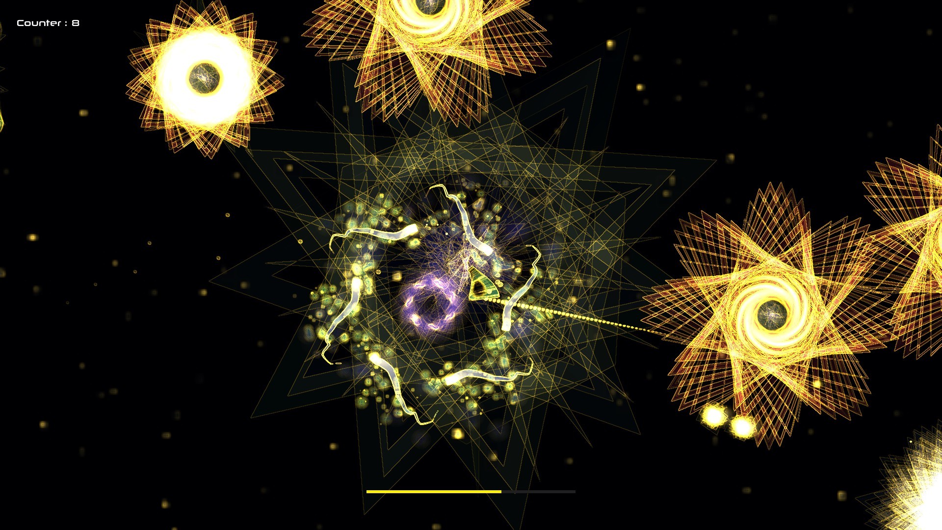 In Journey Mode you explore a cornucopia of kaleidoscopic visuals set to a variety of electronic music as the surrounding universe becomes more and more challenging.