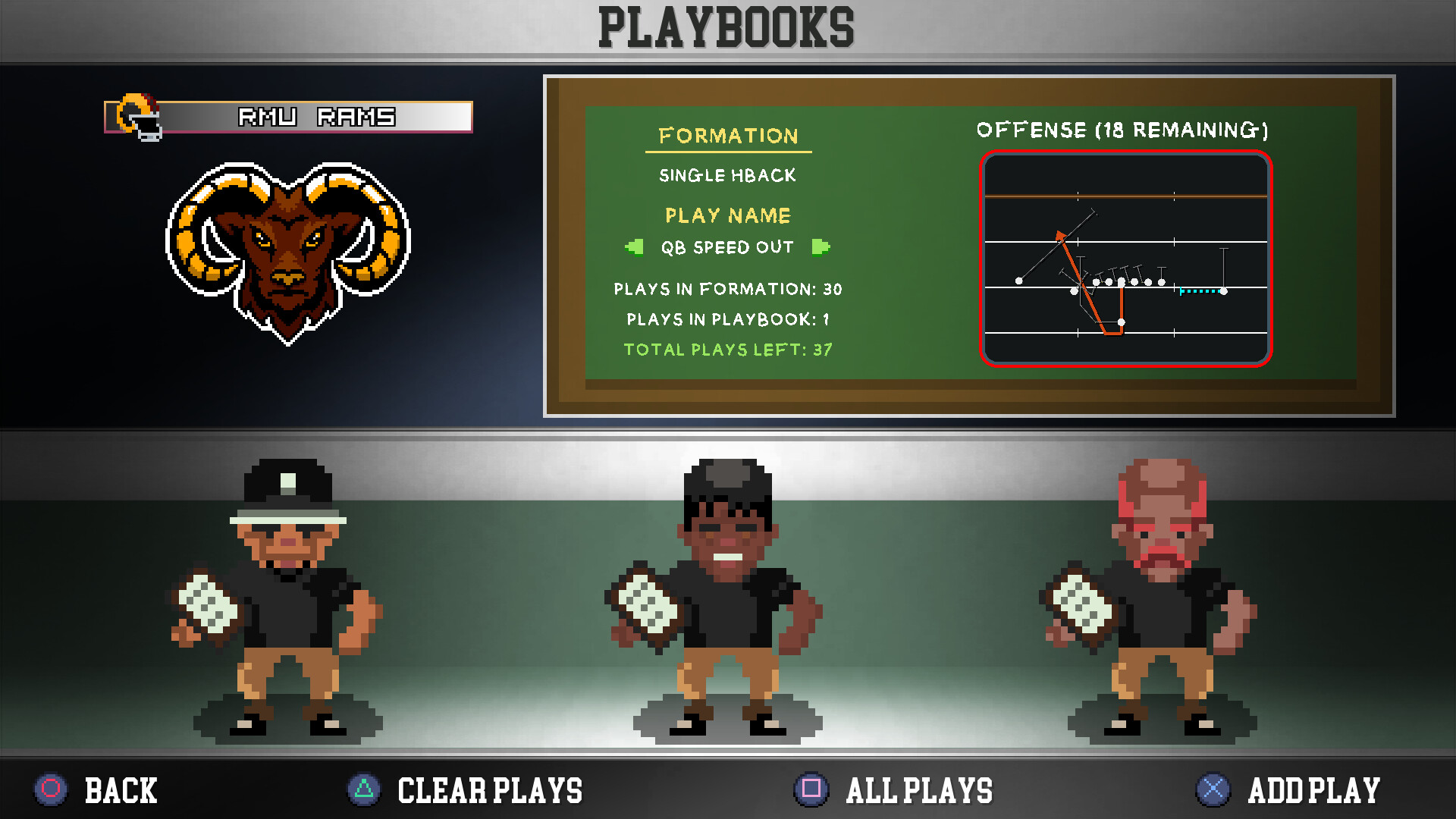 Teams and players are fully customizable with hundreds of logos, hairstyles, gear, mascots, team colors, accessories, and more at your finger tips. With so many options to choose from, you'll be amazed to see the College world you can build!CUSTOM PLAYBOOKS