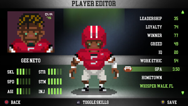 - Deep on-field simcade gameplay experience with beautifully pixelated graphics.