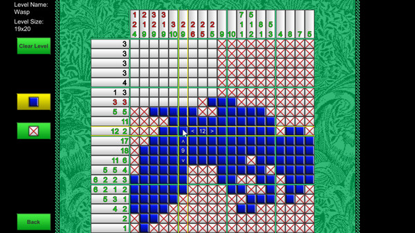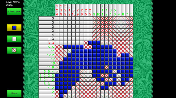 These puzzles can be solved with the numbers on the side of the grid cells. These indicate a group of contiguous filled squares. Between the groups there is at least one empty square.