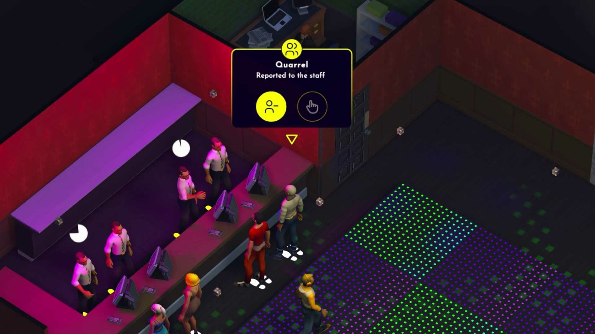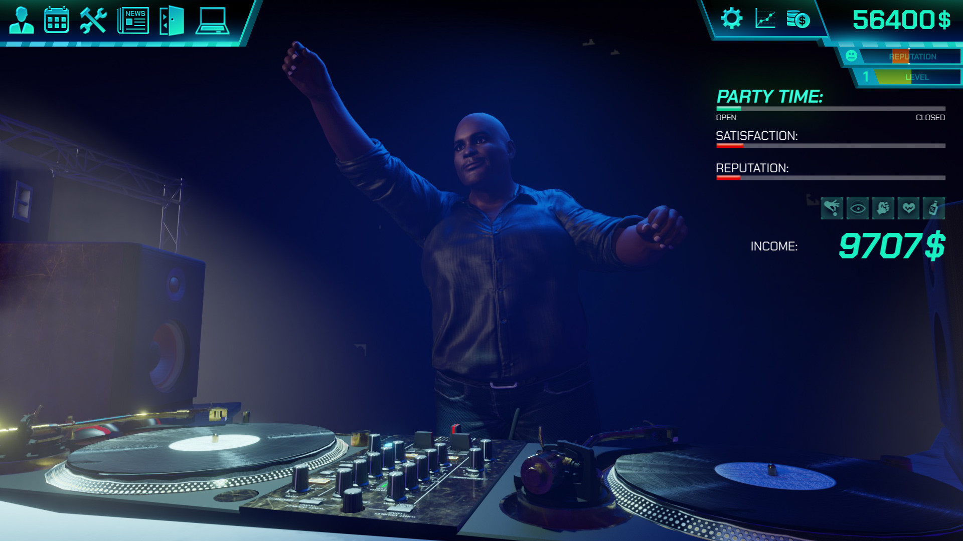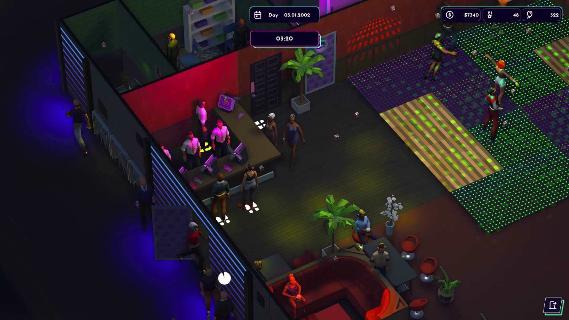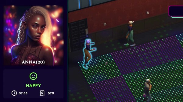 Dein Erfolg ist von der Kundenzufriedenheit abh?ngig. Jeder Gast hat seine eigenen Bed?rfnisse, die du erf?llen musst, damit er deinen Club weiter besucht. Bevorzugen deine G?ste elegante Drinks in stilvollen Cocktailgl?sern oder m?chten sie bis zum Morgengrauen zu den besten Hits tanzen? Deine Aufgabe ist es, daf?r zu sorgen, dass die Musik, die Atmosph?re und der Service ihren Erwartungen gerecht werden. K?mmere dich um deine Kunden ? sie werden dann deinen Club weiter empfehlen und deinen Ruf verbessern. Reagiere auf unerwartete Ereignisse ? versch?tteter Alkohol, eine verstopfte Toilette, ein betrunkener Gast ? du wirst alle H?nde voll zu tun haben!