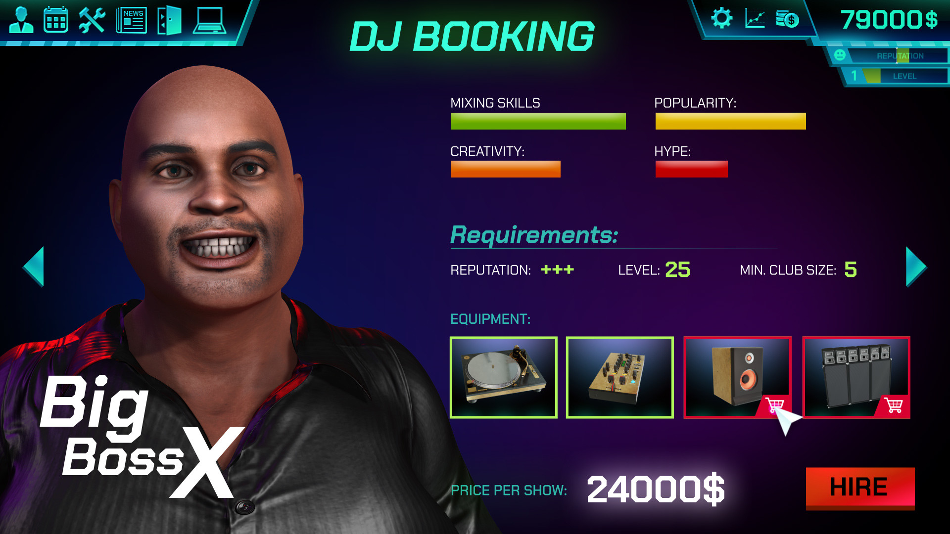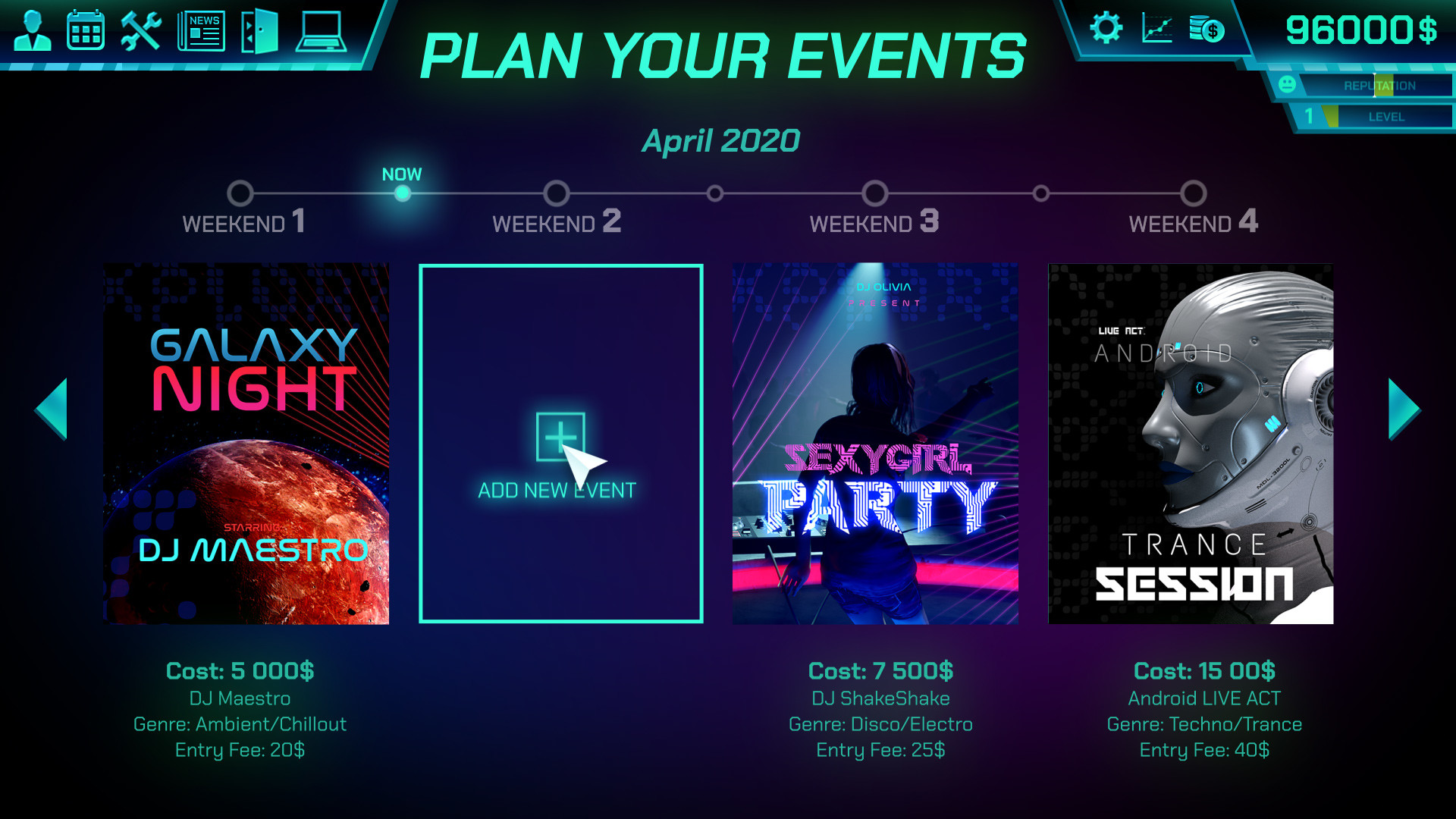 Zu Beginn des Spiels kannst du deinen Manager w?hlen. Jeder Manager hat seine eigenen einzigartigen F?higkeiten, um verschiedene Aspekte des Clubs zu verwalten. ?berlege, in welche Richtung du mit der Entwicklung des Clubs gehen m?chtest. Die F?higkeiten deines Managers werden im weiteren Spielverlauf ihr Potenzial entfalten, zum Beispiel: ein Bonus f?r Barkeeper, die Veranstaltung der Konzerte oder f?r eine Kundenzufriedenheit sorgen. Du kannst entscheiden!
