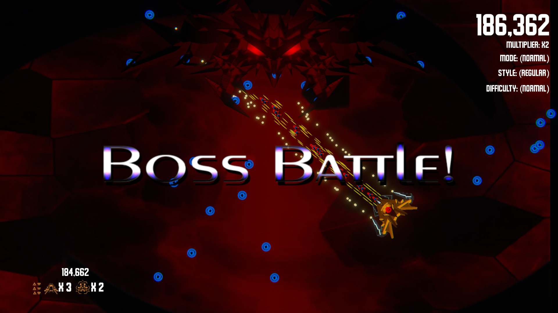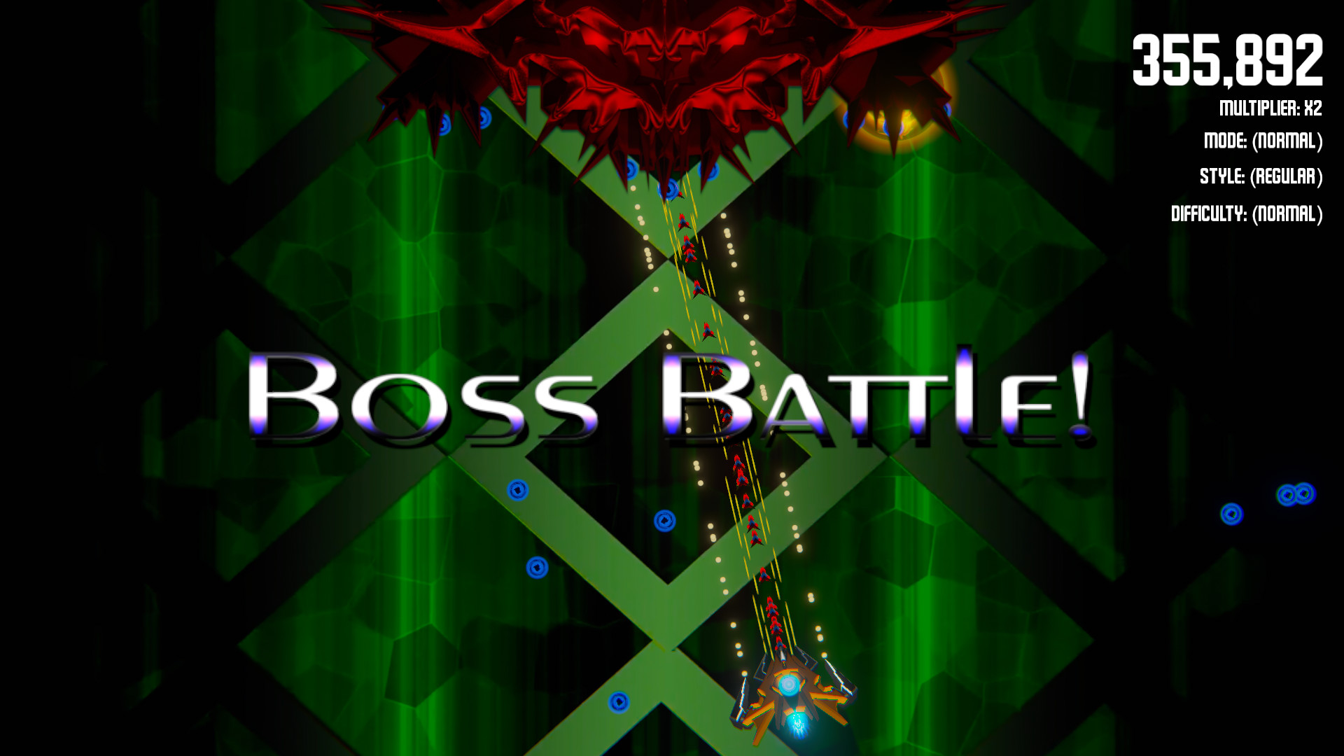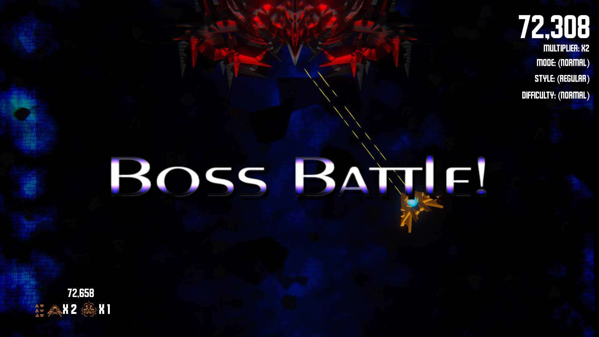 - Timed - A timed mode for speed runners. (Game is over if timer reaches 0). Gain time by killing enemies, bosses & collecting time power ups. (Ship death causes drastic time reduction but lives are infinite unless one life mode is active)