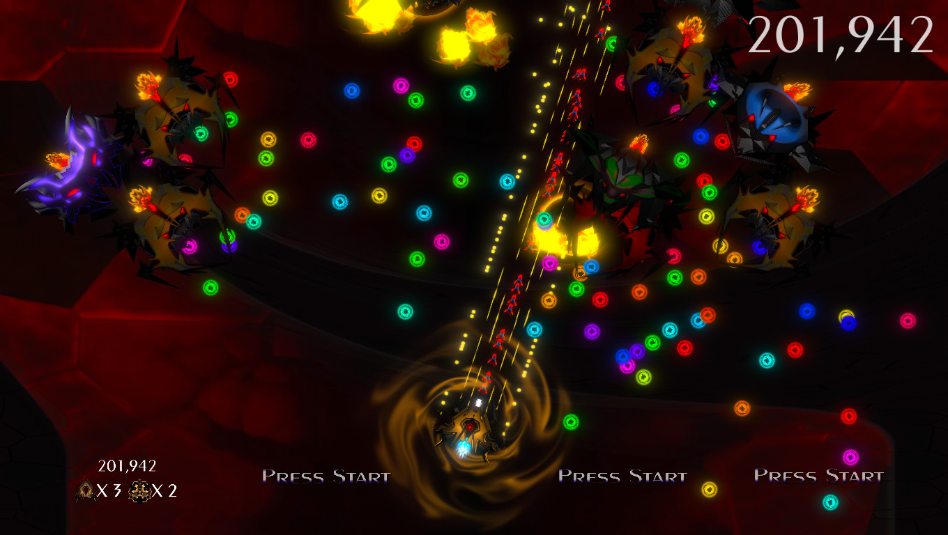 Gun down over 11 massive bosses, build an insane score bank on the leaderboards and overcome clouds of enemy fire.