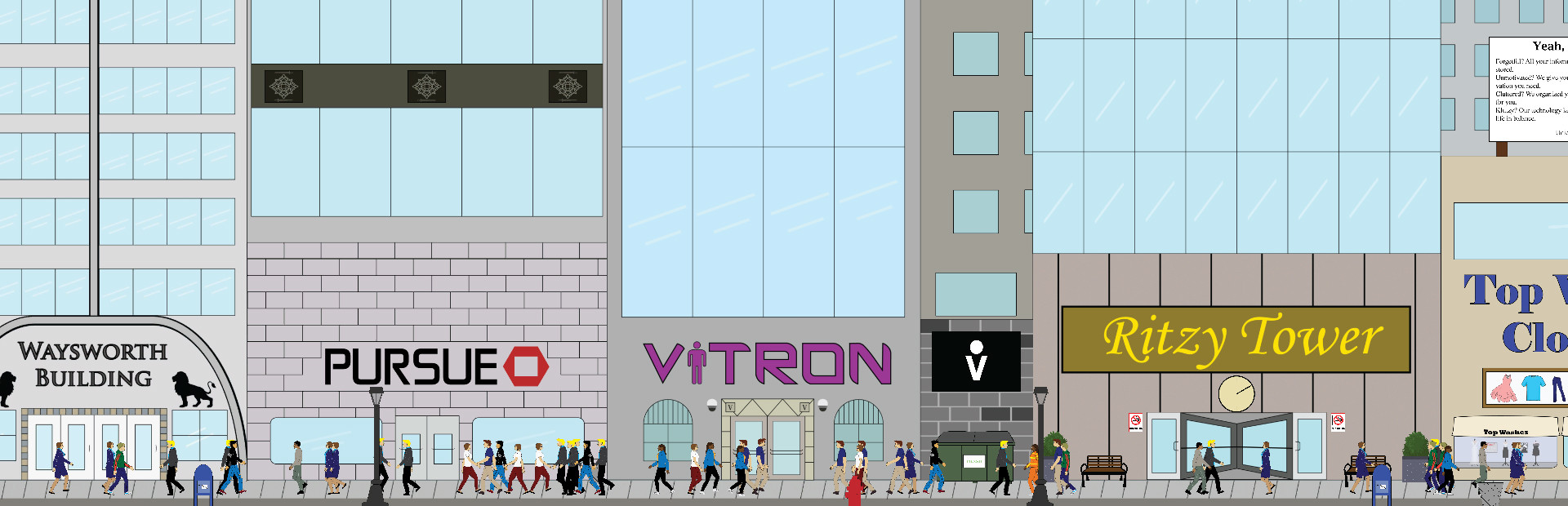 You play as Jake, the main character of the game who starts out in a brainwashed mindset. It is ultimately your choice and awareness that continues the story-line. If you decide to progress the story, you meet the leader of an underground rebellion group that is trying to overthrow Vitron and remove the CEO from power. After explaining his initiative and Vitron's full background, you are given the choice to join in the fight against Vitron.