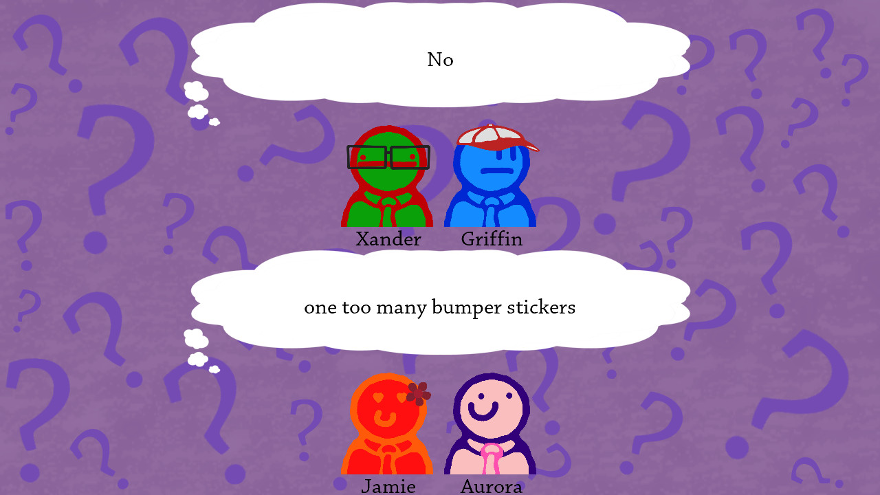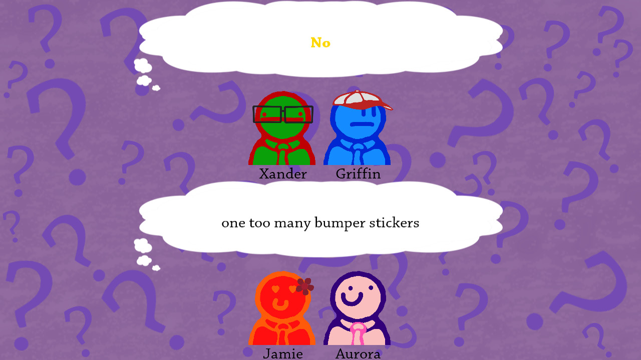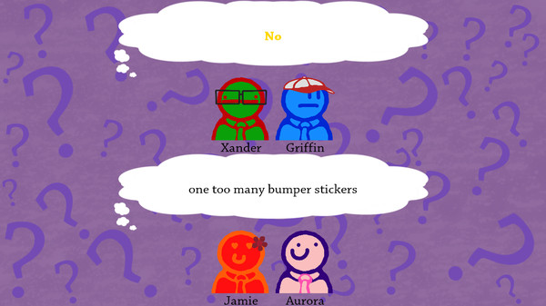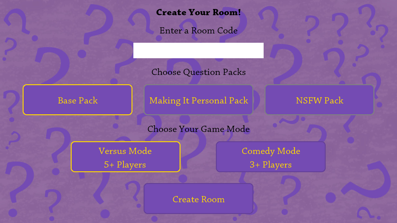 If competition isn't your style, try Comedy Mode, where all players are put on one team and work together to make the best answers they can. No points are awarded, and the focus is entirely on wacky, goofy, nonsensical fun!