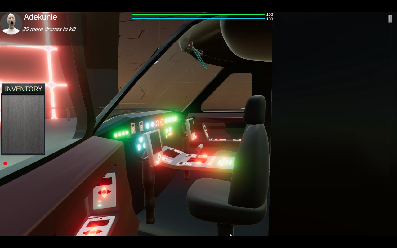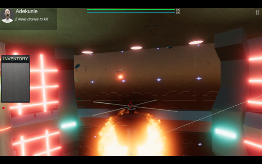 This is a 3D First-person sci-fi game based in a spaceship. You are to go around killing a certain number of enemy drones (depending on the level). The higher the level, the more drones you have to kill. There is also survival mode, where you are basically trying to survive for an amount of time while being "shot-at" by multiple drones. The are also levels where you have to use the control system in your spaceship cockpit to launch missiles that would destroy asteroids that are coming close to your spaceship. Once the asteroids hit your spaceship, It's over and you'll need to restart the level. You will be endowed with different weapons located in different parts of the spaceship. You can also get weapons from the "market". There are multiple weapons with various shooting mechanics ranging from full automatic weapons, to pistols, to grenade launcher, to grenades, to laser guns, to bow and arrow, to time bombs, and many more. You could also enter a chopper in certain levels and use the chopper to fight drones. You can also interact with the computers you see in the game. There are currently 60 levels which get harder, the higher you get.