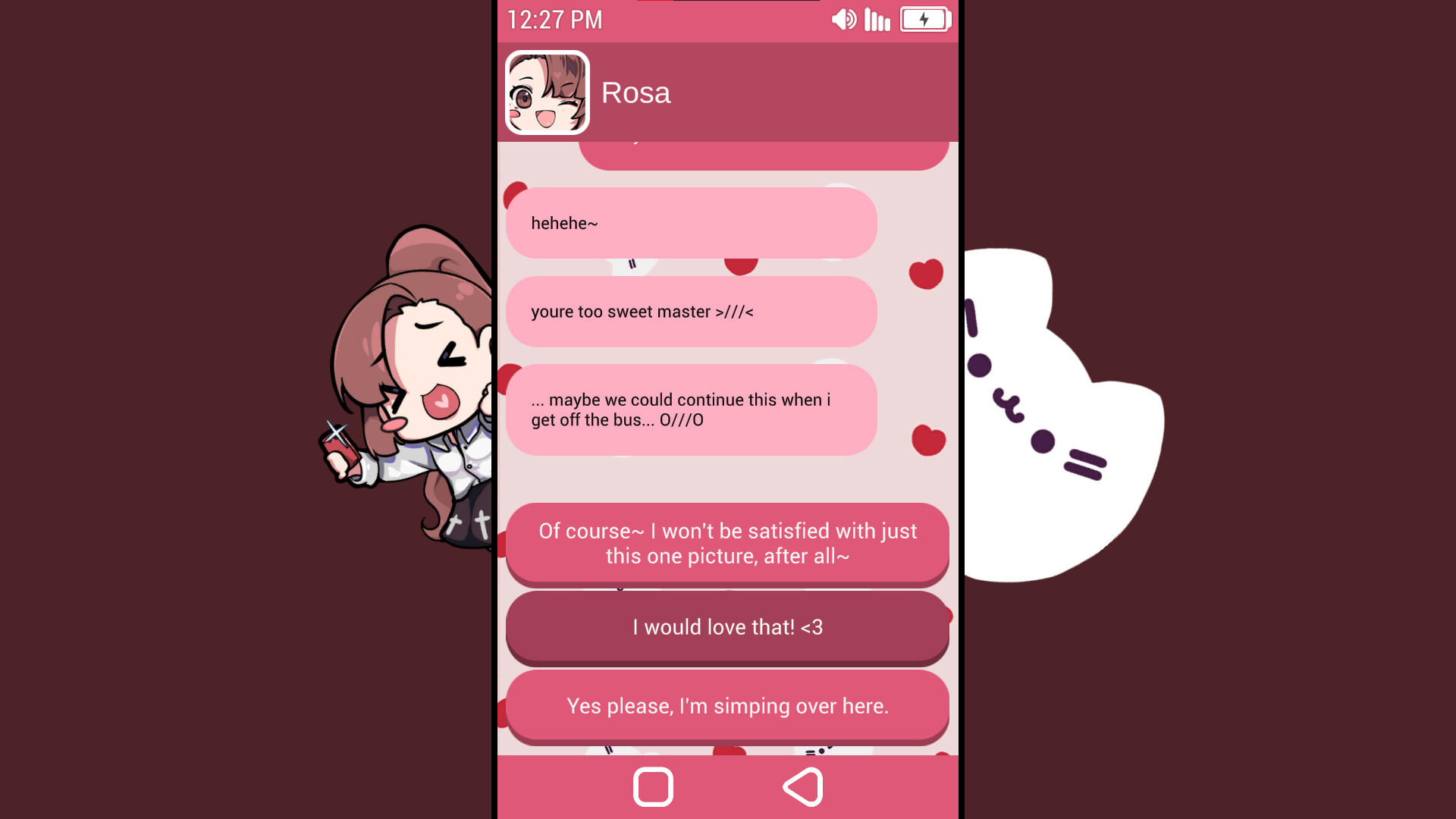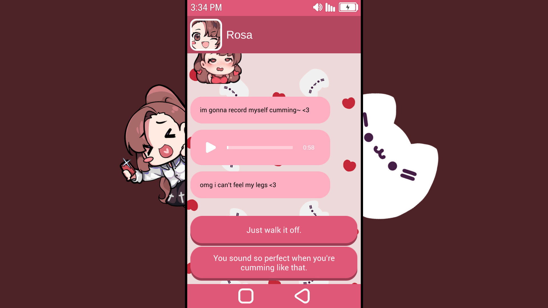 Your choices also affect the voice messages you will receive. Both Mia and Rosa are voiced by professional voice actresses and will send you voice messages that range from cute to very naughty. Can you get them all?
