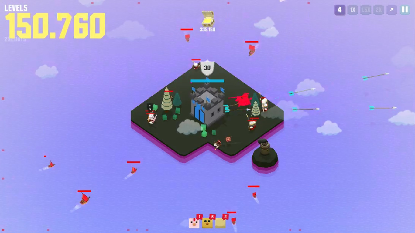 Lonecastle is a top-down shooter where the player attempts to survive countless enemies. Defend your little castle from the incessant waves of enemy ships and soldiers. Collect gold and gain experience to improve your castle.