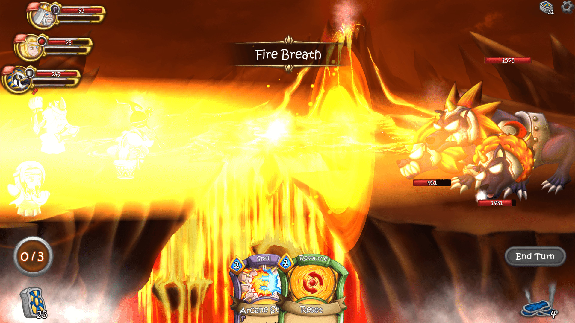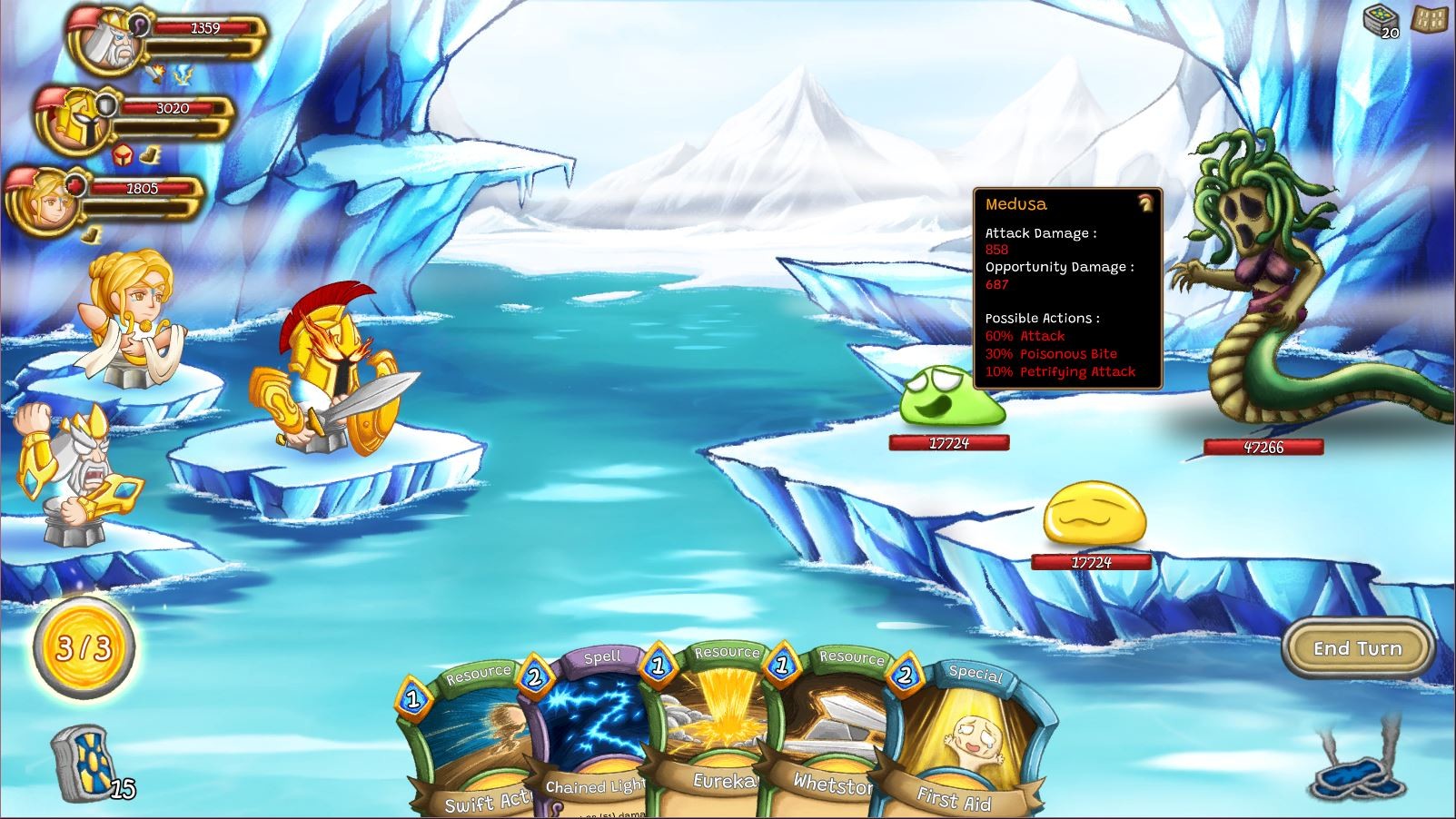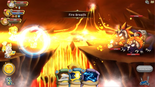 - Play as not one, but three heroes at once ? A never-before-seen feature in a card battle game! When you move a deity to the front row, he/she will automatically perform a special move. These moves include abilities that heal teammates, make an extra attack, or even provide beneficial effects such as drawing an additional card or regaining action points!