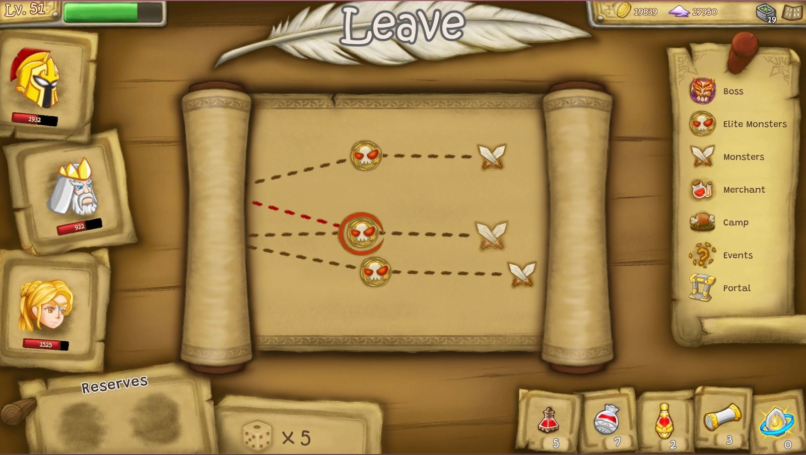 - Embark on a unique adventure every time - Move around a randomly generated tabletop map to gather coins, healing potions, and new heroes to join your party.