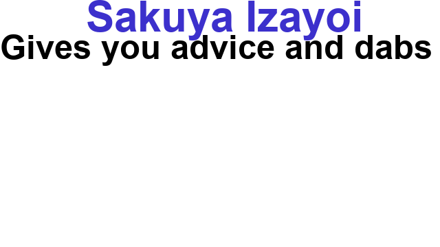 Enjoy an atmospheric scene with Sakuya as she gives you insight and advice into your troubles, whether you're feeling sad, depressed or anxious, Sakuya has some advice and strategies for you to try out. If nothing else, she's got a surprise move for you that's sure to cheer you up! Features very cute ZUN-styled art, an ambient beach scene and practical advice and strategies to help you overcome your troubles.