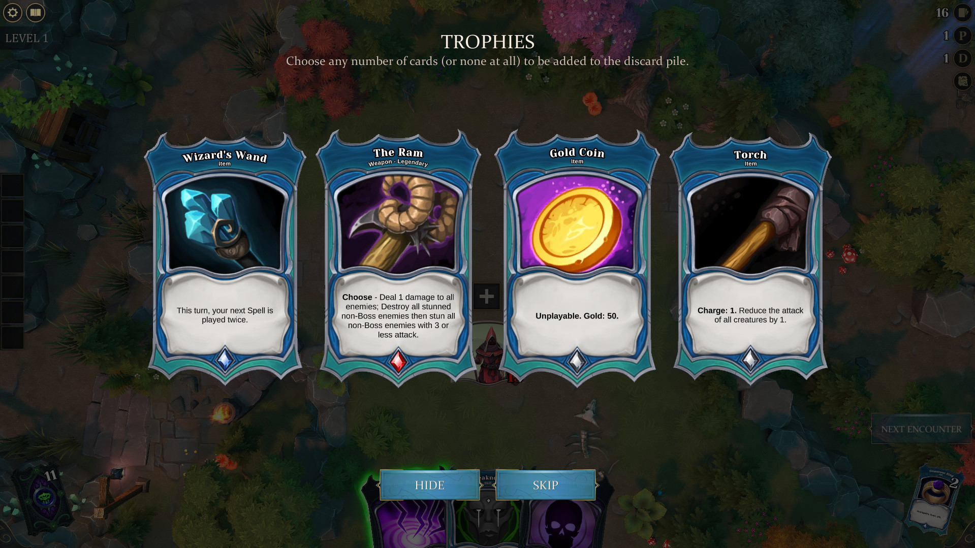 - Building your unique deck. Your items, treasures, weapons, skills, same as wound, toxin and curse go to the same deck ? balance your cards and be ready for everything!