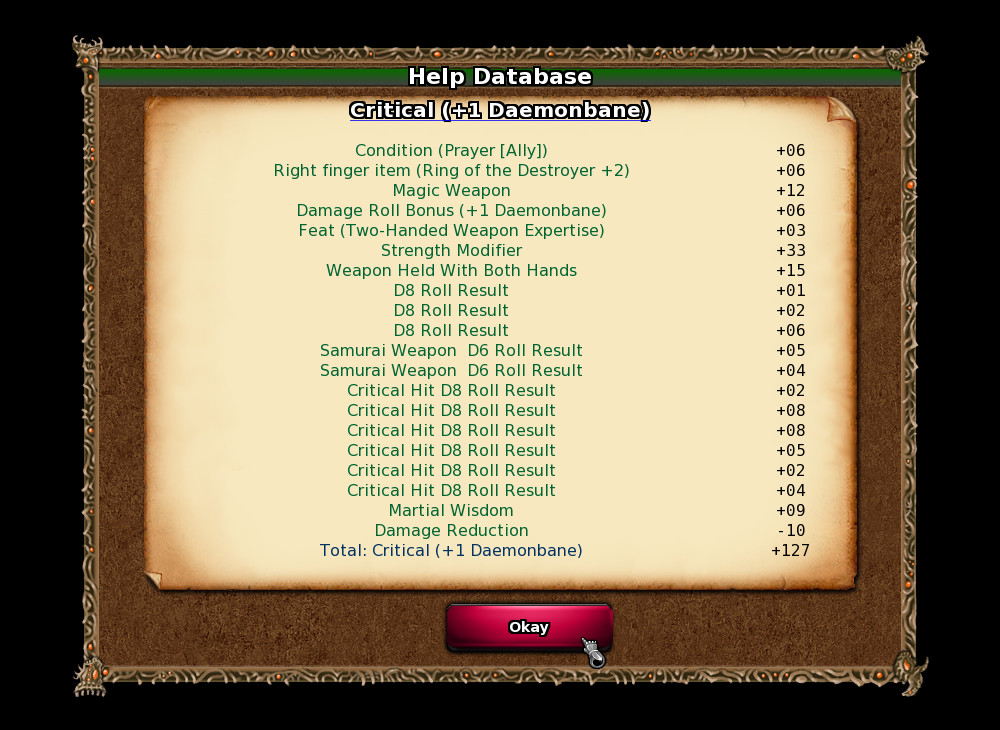- Omnipresent help files and clear in-game feedback on the results of each dice roll, saving throw, attack roll, modifiers and so on. A similar feature exists in Temple of Elemental Evil.