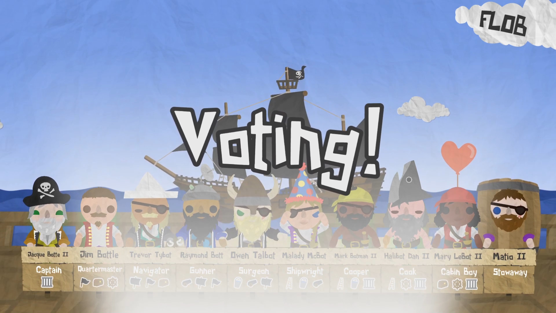Nobody?s voyage is ever over because they were thrown overboard in Paper Pirates though, and after being voted off you come back on board as the ship?s new stowaway! You can?t win the game if you stay as stowaway, but if you can convince the crew to throw someone else overboard, well... you?re sure to rank up and earn that promotion.