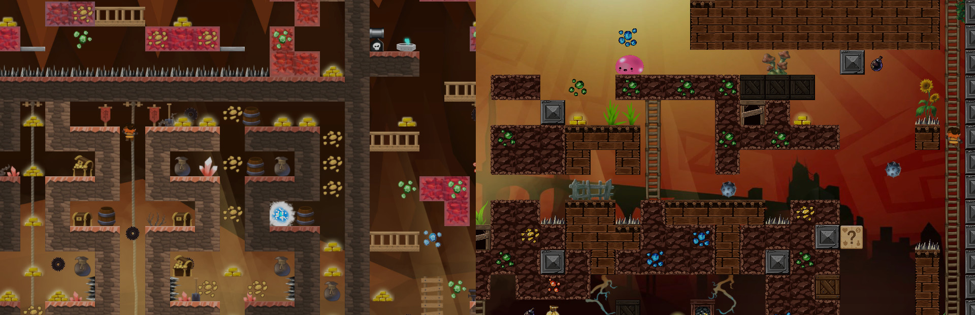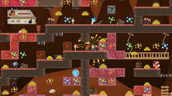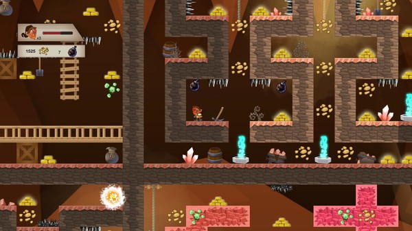 - Locations! - earth, ice and clay mine. These are extensive stages that you must discover and comb in search of passages to their further parts. Explore them and destroy fragments susceptible to damage. Find treasures and HP drinks. Each environment delivers a specific type of danger, and new inhabitants to encounter.