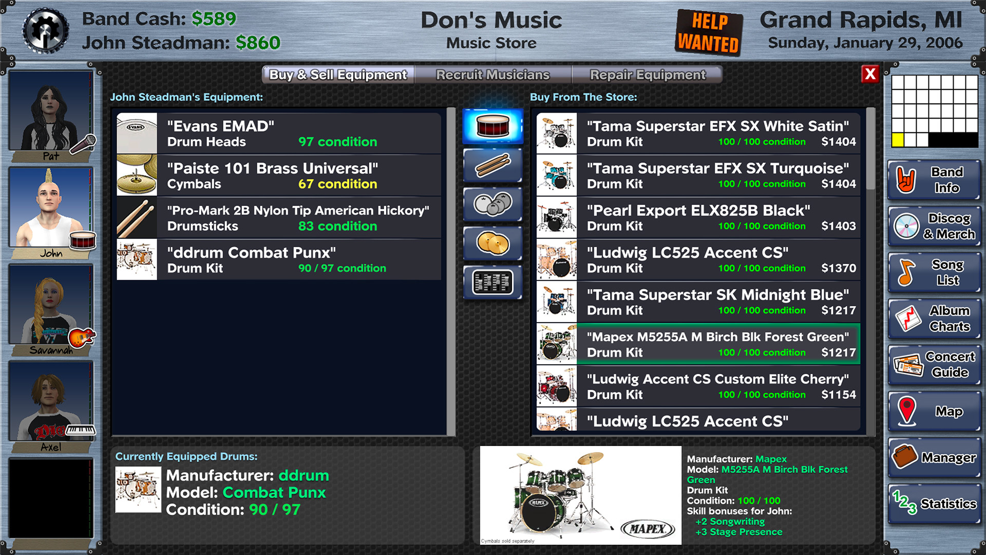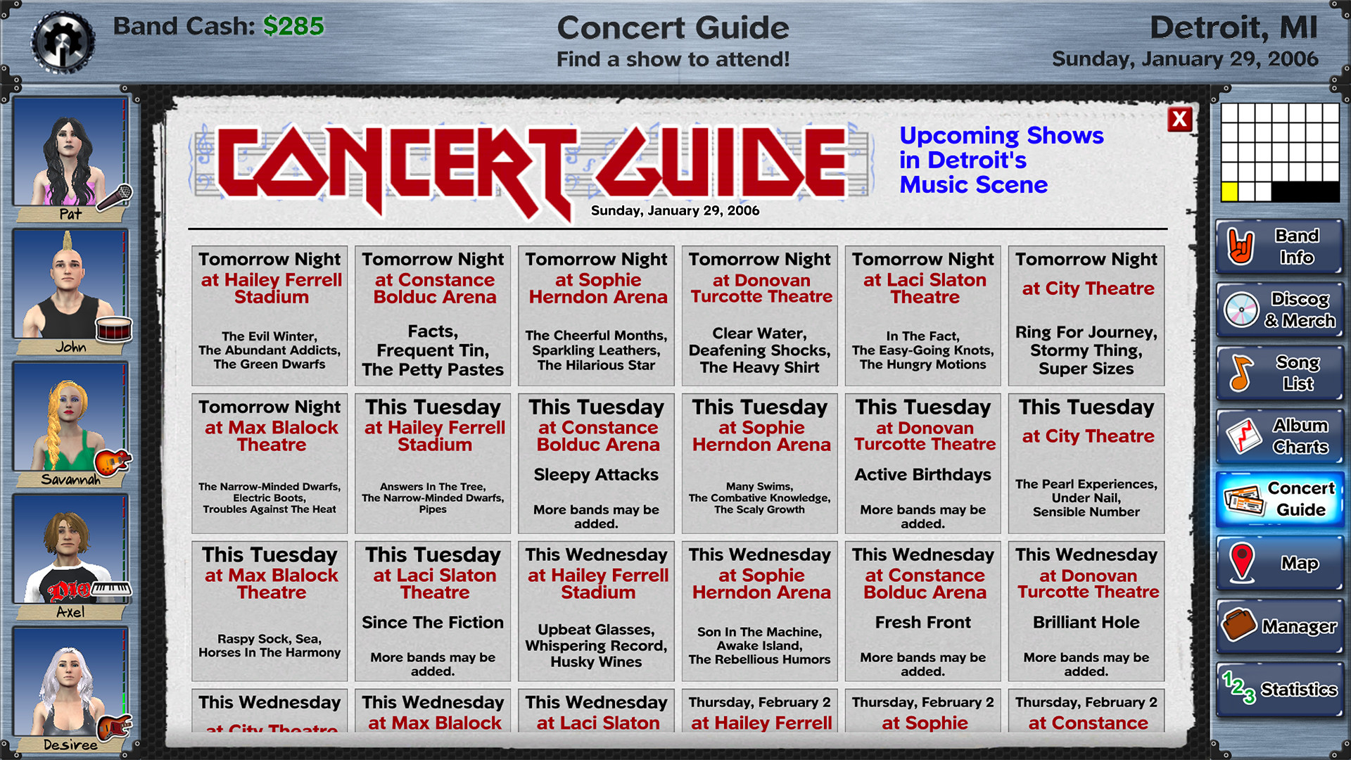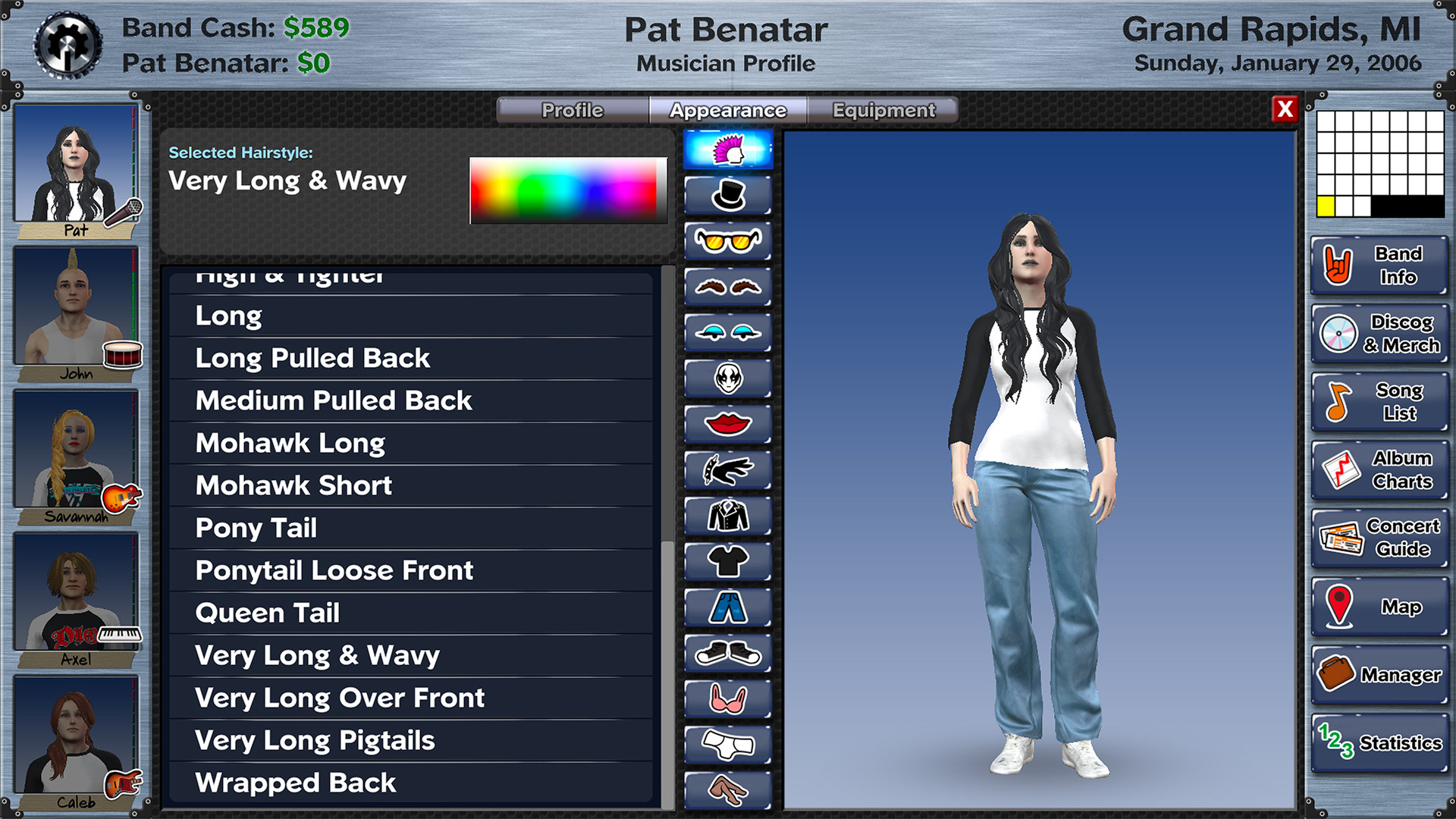 ? Fully customize your band's appearance and van with thousands of combinations of hairstyles, makeup, clothing and paint jobs.
