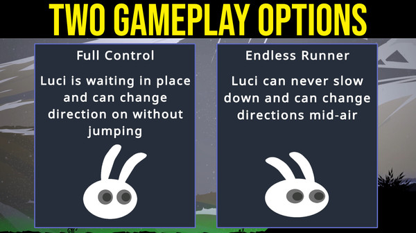 Luciform is a 2D color-based precision platformer.This basically means that in this game you can ONLY interact with the same colored platform as yours and that you will fail MANY times trying to beat the next level.