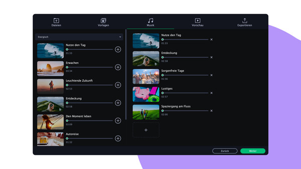 - F?gen Sie Ihre Lieblingstitel hinzu oder verwenden Sie integrierte Soundeffekte und Musik.