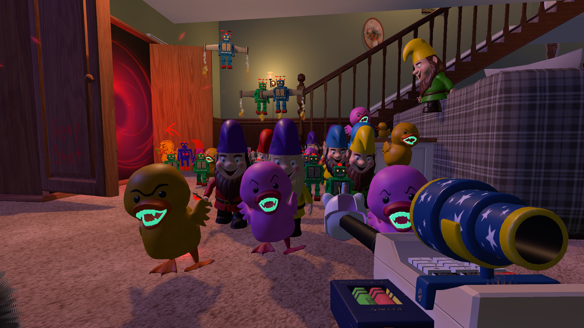 Finde einzigartige Waffen aus Haushaltsgegenst?nden und setze sie ein ? von der Popcorn-Granate bis zur Cola-Kanone.