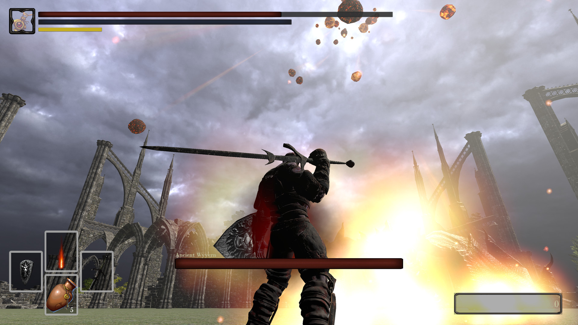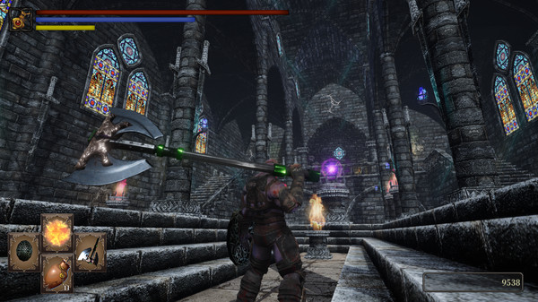 The game features simplified 3D Action RPG elements, such as a leveling and resource management system, with the highlights of a souls-like melee and magic ability combat system as well as full gamepad/controller support with a custom 3D cursor.