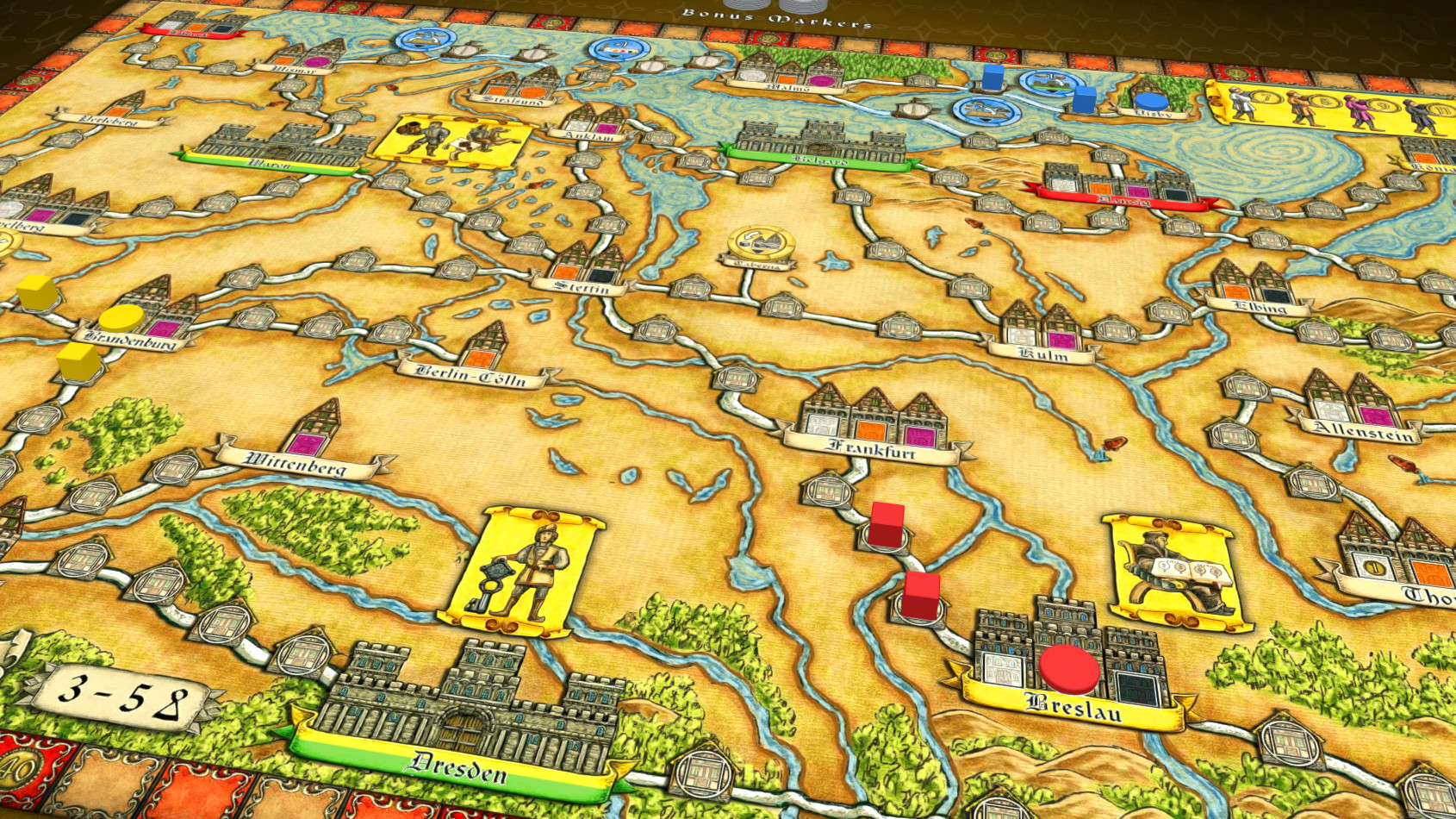 This map introduces new items into the game: e.g. Ocean trade routes and permanent bonus markers.