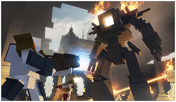Battle in epic matches centered on the your team's Titan, a giant, destructive robot that confronts the enemy's Titan. Players can power up their Titan by performing tasks in-game, can defend their mammoth ally by killing enemy players, and can attack enemy Titans directly. The teams compete until one side's Titan reaches the enemy base and destroys it!
