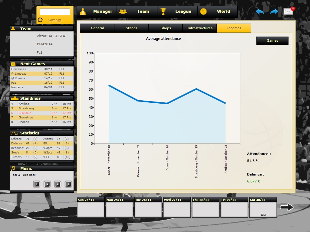 This results in the management of a multitude of parameters each day : starters choice, trades, trainings, finances, management staff, tactics and even new talent research.