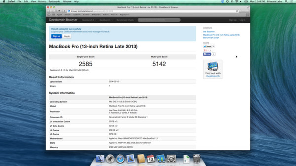 Share your Geekbench results with others by uploading your results to the Geekbench Browser. You can also compare your results with other users' results; with over 390,000 Geekbench 3 results, the Geekbench Browser provides a rich and varied database for comparisons.