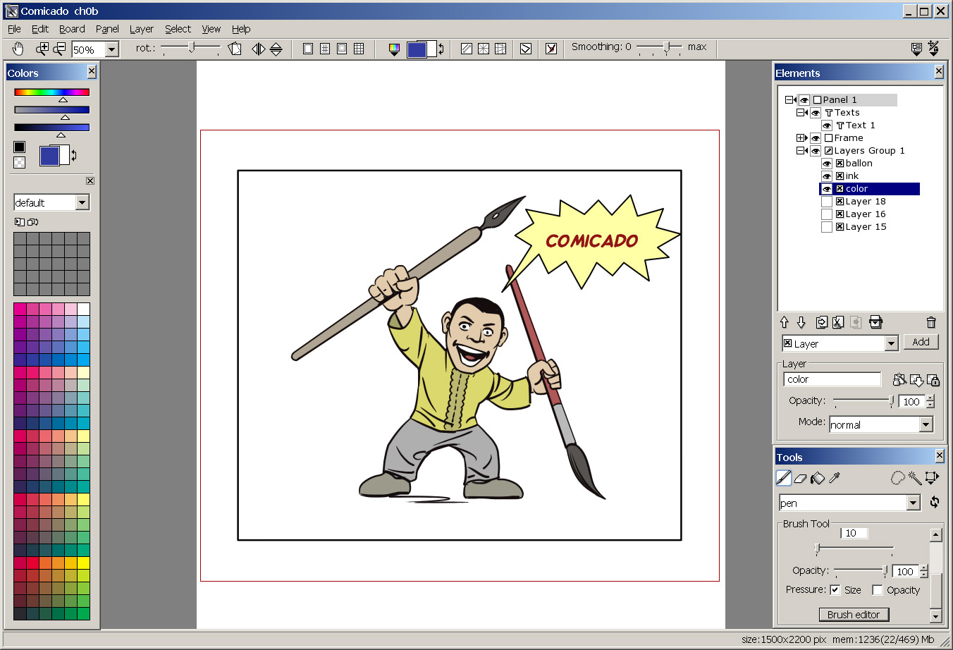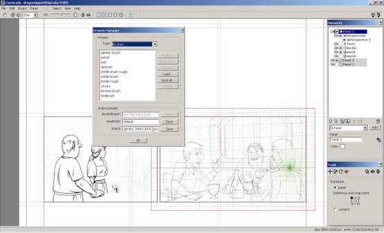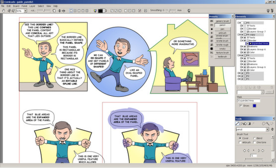- Splines - vector lines for precise line art, suitable for creation of comic balloons.