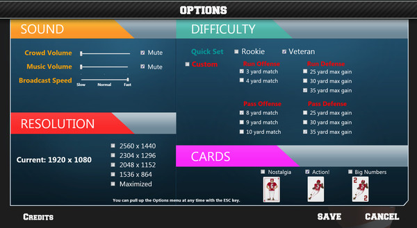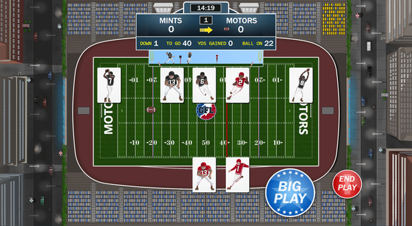 - enjoy the drama of professional football in an intense, 20-minute package. Unique gameplay combines football strategy with card play, and includes thousands of possible text events to influence the action.