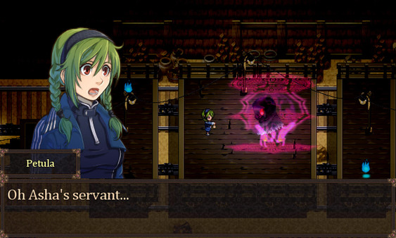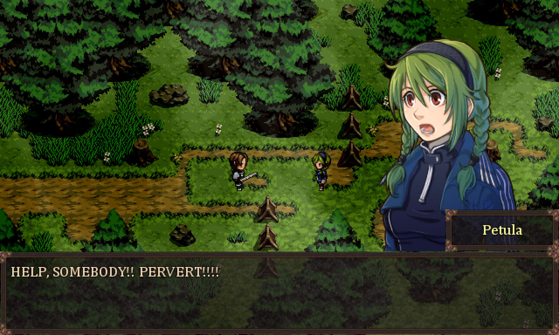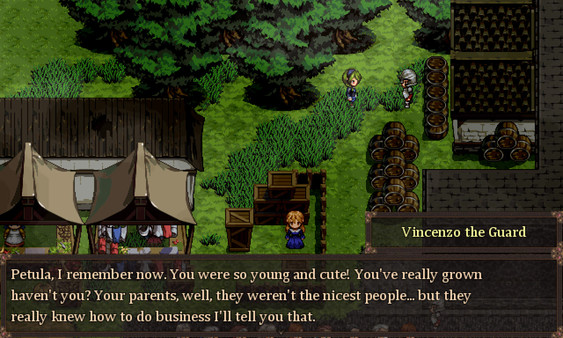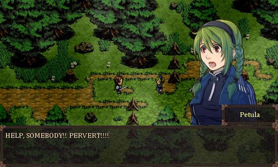 You play as Petula, an unemployed, emotionally charged, ill-tempered, otherwise average young woman. With the royal army hot on their heels, the heroes have made their way to your village where they begin scavenging for supplies in everyone's homes. After you confront them for stealing your pendant, they rush off to continue their quest, giving you a quest of your own to retrieve it.