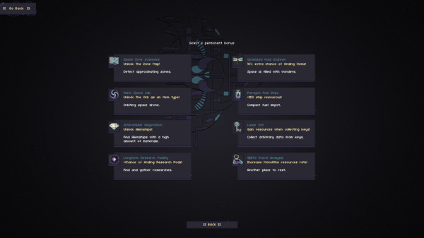Discover a set of several different upgrades, like researches and different worlds enhancements; why not for example unlock the shield as an item type or see moons in space?