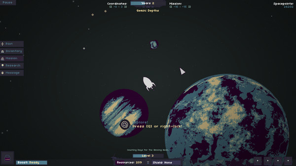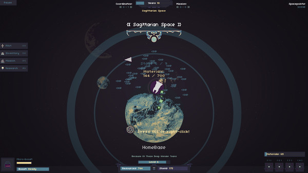 You're drifting, in a big, empty and silent space. Searching for a new home. You know a few coordinates to some random locations; but this is the only information you got.