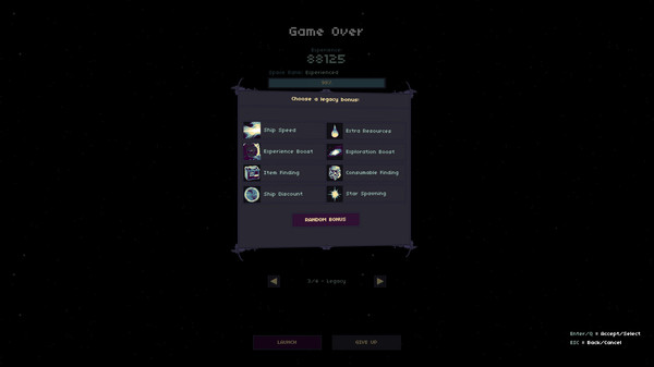 There is a large amount of different item types you can find to enhance your ship. These are randomized. Try to get legendary items!