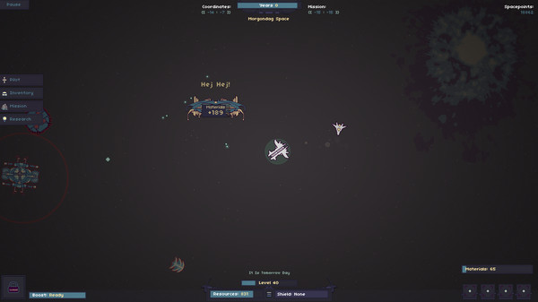 RymdResa is a challenging and evolving space adventure, based on randomness, with RPG elements. Abstract story elements and art are expressed throughout a lonesome and calm journey in space.