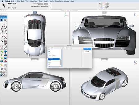 Die Unterst?tzung metrischer und imperialer Ma?einheiten und die Unterst?tzung von AutoCAD? und anderen Formaten zum Datenaustausch macht ViaCAD ? zur perfekten 3D-Software, um Ihre Ideen zu entwerfen. ViaCAD ? bietet Werkzeuge f?r Architekturzeichnungen, mechanische Entw?rfe, elektrische Schaltpl?ne, Do-It-Yourself-Projekte und vieles mehr.