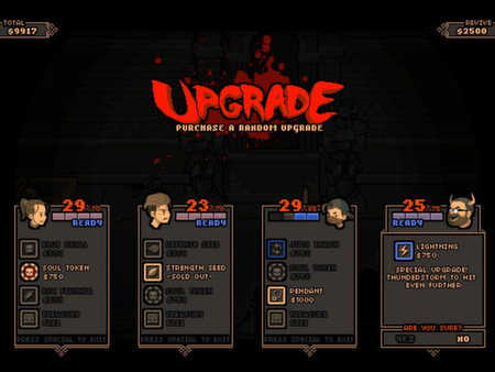 Devil's Dare doesn't just relies on grinding and leveling up, but instead introduces permadeath to keep players on their toes. With every kill, the player makes some cash, which you can use to purchase upgrades or save it to revive when you're dead. When you run out of cash completely, you are dead for good and it's time to start over again. This is a mechanic inspired by the good old arcade days, where every death meant another penny wasted!