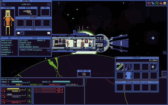 - Your crew eats, sleeps, and needs entertainment. Each one develops unique traits throughout the game that help or hurt the mission. Various outfits and weapons can be found to customize them further.