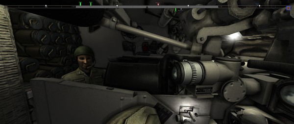 Depending on operation, player will have either Soviet medium tank T-62 or US main battle tank M60A1. Player can drive his tank from the driver?s station, fire from the gunner?s station, and command his tank crew and whole unit from the commander?s station. Each tank has interactive cockpit, where player can perform basic operations using a mouse: select sight, move between the crew stations, stowed position, work with the tank equipment and select the shell to load.