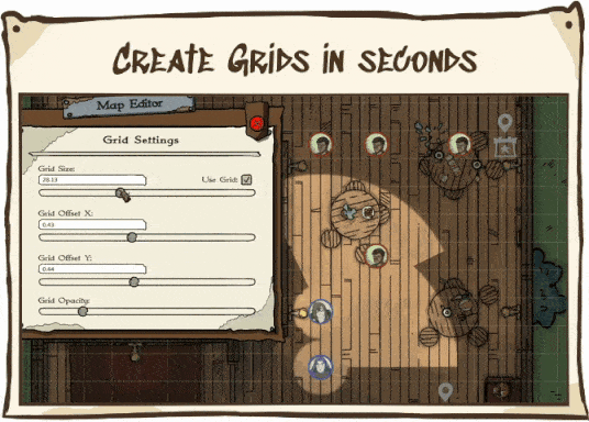 Want to use your own maps? Just upload them and scale the grid as you see fit!