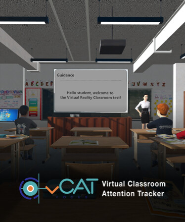 The Virtual Classroom Attention Tracker (vCAT? Focus) is an advanced VR-based assessment specifically designed to evaluate attention within an immersive virtual classroom setting. This setting is engineered to simulate real-world distractions incorporating visual, auditory, and multimodal disruptions. Over the course of the 13-minute AX-CPT assessment, participants are immersed in this environment and tasked with maintaining focus on specific attention-related activities. The system meticulously records head and hand motion data to analyze both active and sustained attention, as well as hyperactive and impulsive behaviors. The vCAT? provides detailed, objective metrics on focus, self-control, and physical steadiness, and furnishes comparative analyses against normative benchmarks for corresponding age and gender categories. Furthermore, the tool is capable of producing both standard and comprehensive parental reports within minutes, offering invaluable insights into participant performance.